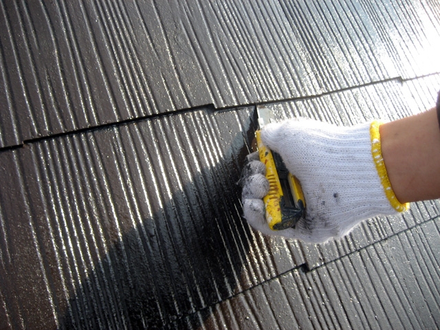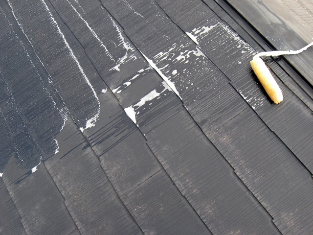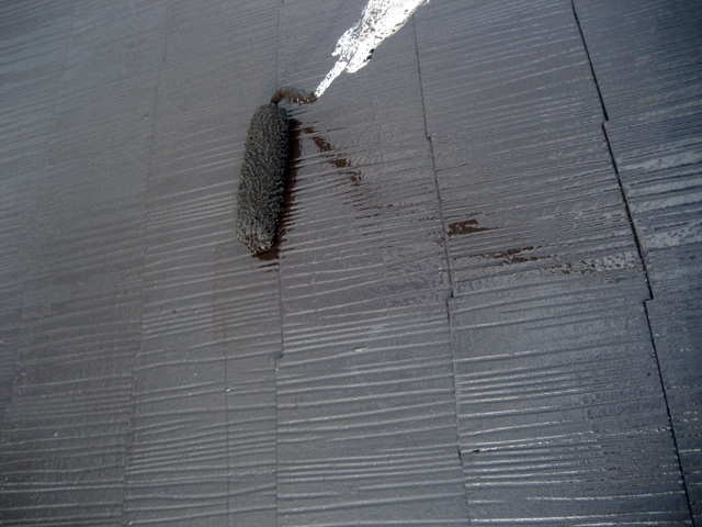 下塗り完了状況 下塗りを塗った時点でいくらか艶が有るとしっかり、下塗りをした証拠です。