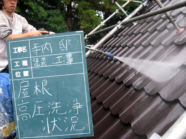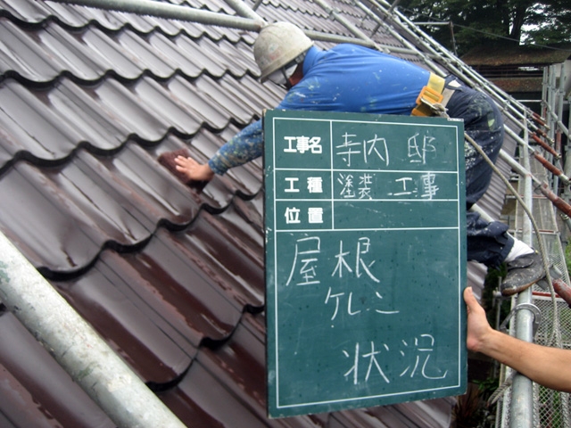 ケレン状況。ケレンとは錆やコケなどの付着物を取り除き清掃する作業名です。