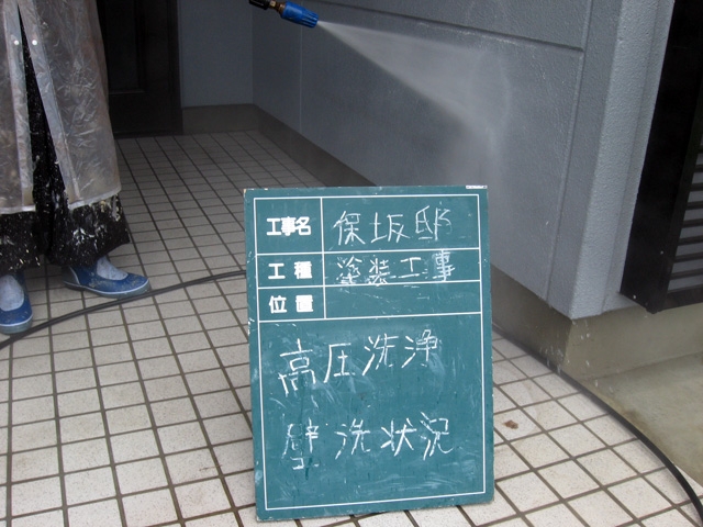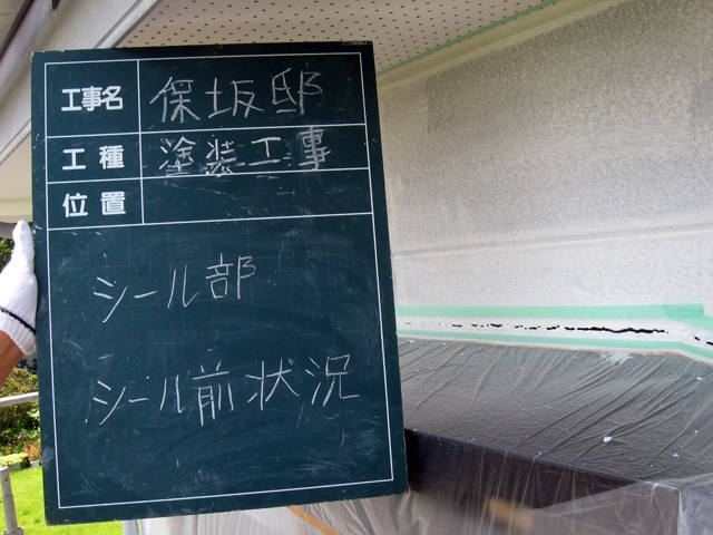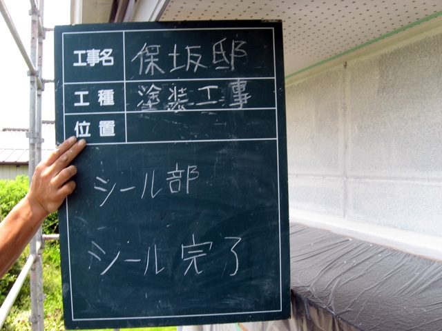 外壁下塗り状況。塗料は可とう系の下塗りで乾くと少し伸び縮みする微弾性塗料です。